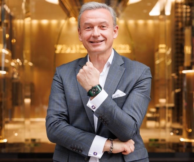 Mentre ci incontriamo ancora una volta con Rudaz, riflette su tre delle “cinque C” del marchio: creatività, complicazioni e “cool” – la qualità intangibile che fa tornare i clienti. In questa intervista, approfondiamo la strategia unica del marchio per il mercato dell’Asia-Pacifico, gli ostacoli tecnici delle sue ultime complicazioni e perché, per Franck Muller, la regola più importante è spesso sapere quando infrangerne una.