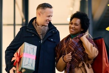 Immagine da Salesforce di un uomo e una donna che effettuano acquisti durante le festività
