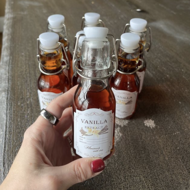 Ho regalato della vaniglia fatta in casa per Natale ed è stato un successo! Abbiamo usato queste bottiglie per regalarle e penso che le persone fossero più entusiaste delle adorabili bottiglie che della vaniglia stessa!